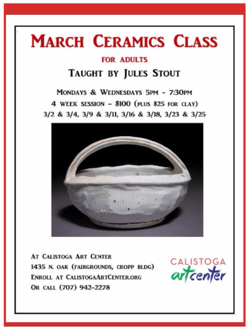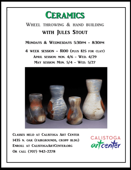 I shall return to CA Sunday with six weeks left to prepare for Calistoga Art Center’s Small Plate Ceramic Fundraiser and will begin working on building my inventory for the Napa Valley Open Studio tour in September.